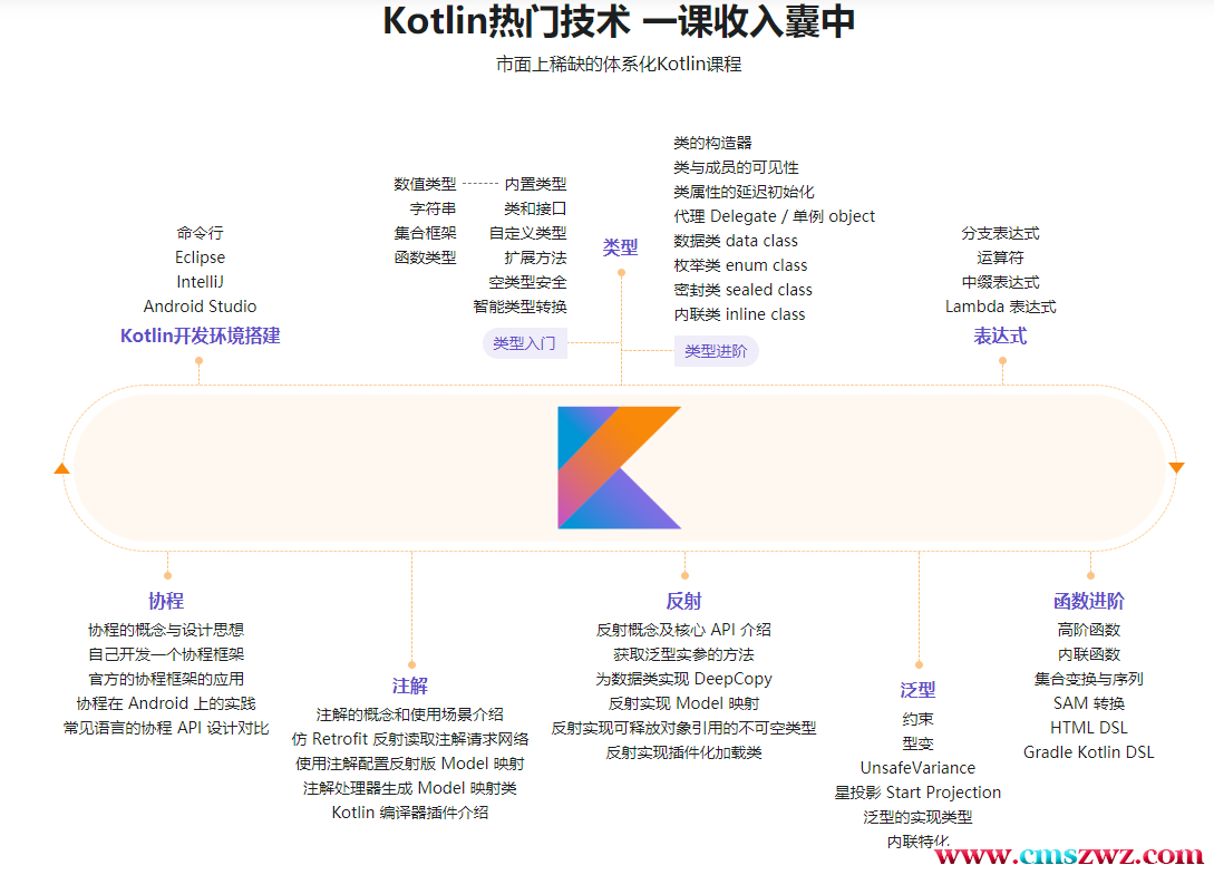 Kotlin在2019年被确立为Android首选开发语言,一些大厂也对Kotlin语言青睐有加。此次课程以Kotlin1.3.X版本为基础,带你构建Kotlin知识体系。无论对Android开发还是后端开发工程师,都是提升求职砝码的上佳之选。