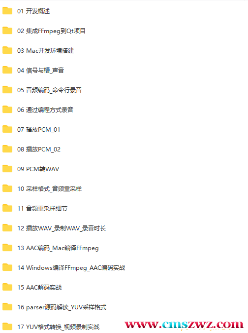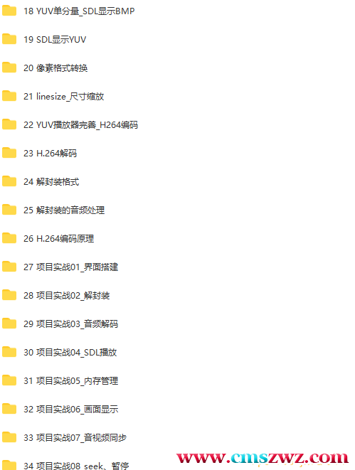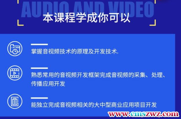 系统讲解声音视频开发的原层原理、开发技术及框架应用,包括音视频的采集、编码、解码、H264、音视频渲染处理、音视频数据打包传播、FFmpeg框架应用、RTMP流媒体等等,并带领大家完成播放器、视频会议