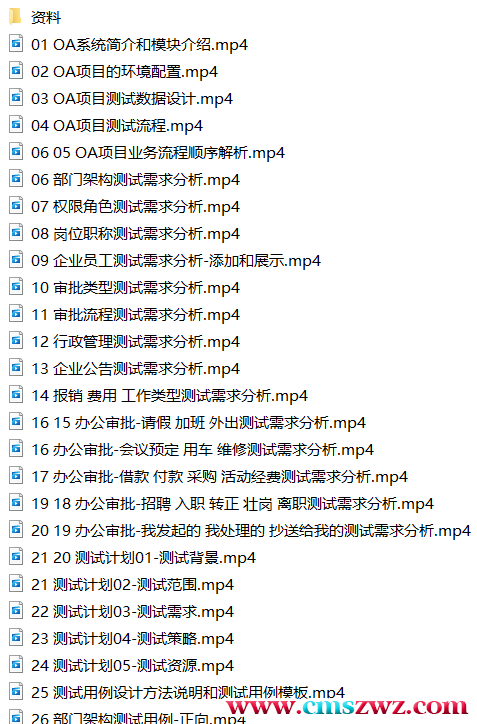 本课程将会以OA项目为例,系统性的讲解Web项目测试中,功能测试、兼容性测试、安全测试、易用性测试等几大测试类型,,包含OA项目测试运行环境搭建、项目测试需求的分析和编写、测试计划指定和编写、测试用例设计和编写、缺陷的发现和缺陷报告的编写、测试总结报告的书写等内容。