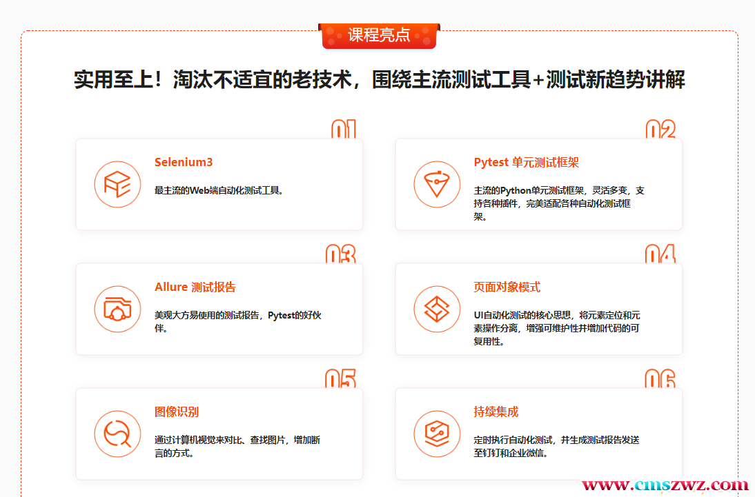 不会自动化的测试是没有未来的!本课程以时下主流的测试框架Selenium3+Pytest+Allure,手把手带你实践自动化测试全流程工作,体验自动化测试的畅快,大大提升个人效率。