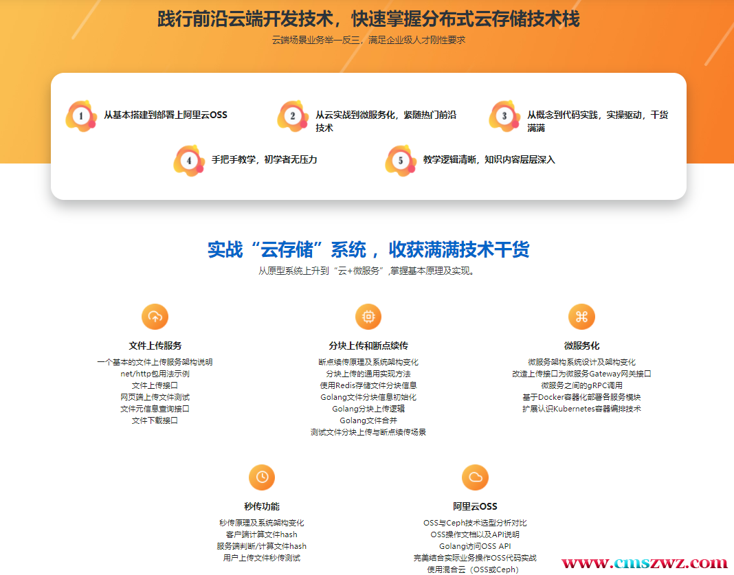 本课程将通过Golang来实现一个支持断点续传和秒传的分布式云存储服务系统。课程中老师将手把手带你从快速构建“云存储”原型系统,到分块上传,到搭建访问阿里云,最后进行系统的微服务化,让你快速掌握架构传输性能和稳定性的优化过程。