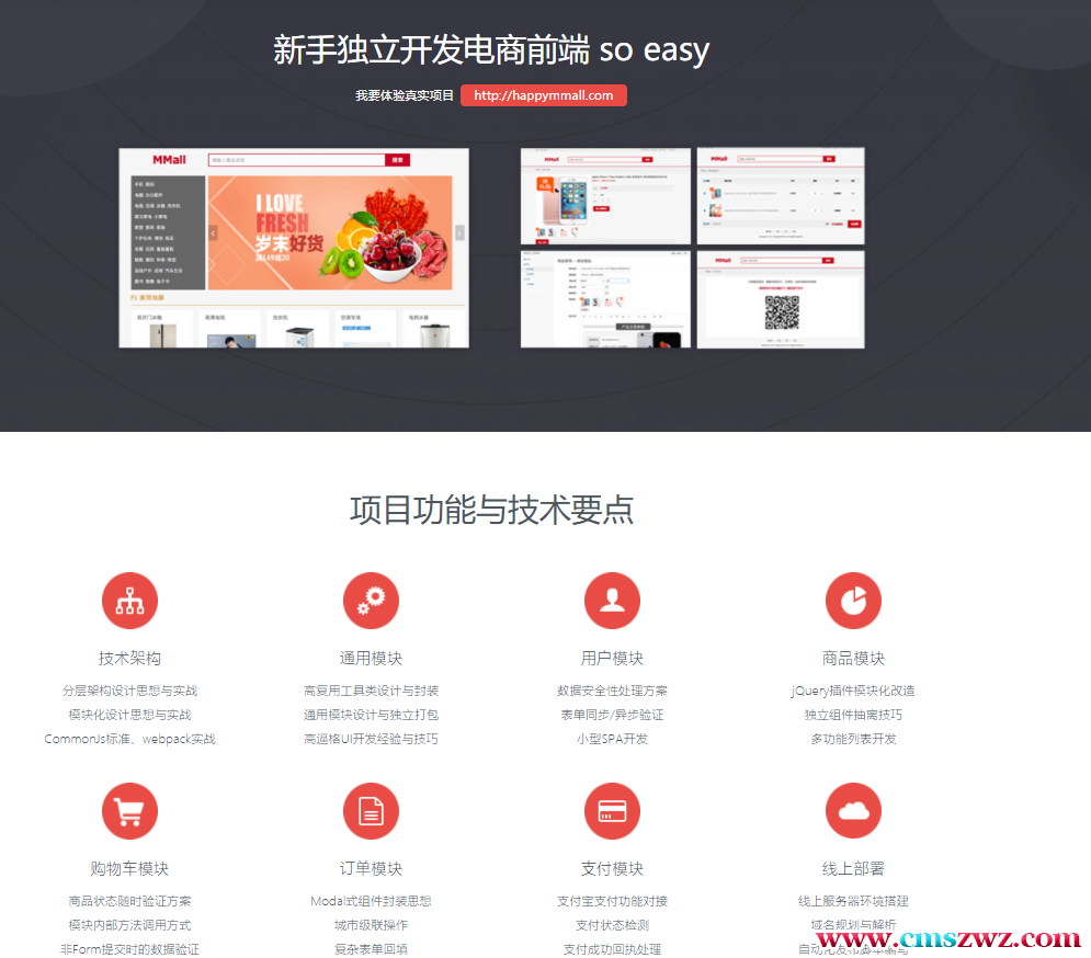 本章我会带着同学们分析,拆解商品模块的功能与技术点,并手把手带大家实现商品首页,商品列表,商品详情等功能(知识点:JQuery插件模块化改造,独立组件抽离技巧,多功能列表开发,轮播图开发、分页组件拆分和封装、商品排序,商品大图与缩略图联动等)…