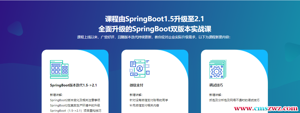 课程上线以来,广受好评,而讲师对同学的关心也在持续,因此特别带来本项目的随版本迭代更新内容,教你应对企业实际升级需求,让你紧随技术潮流,做到持续进步,成为独当一面的工程师。主要涵盖以下内容: SpringBoot2版本变化及相关注意事项 SpringBoot2在真实生产环境中的升级 SpringBoot(1.5->2.1)项目重构技巧 针…