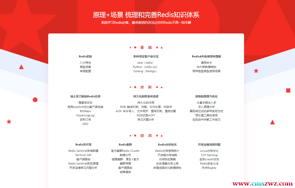 由阿里云Redis开发规范原作者为你深入讲解,课程包含Redis基础、使用经验、Java/Python客户端示范、Redis使用规范,由浅入深讲解,并伴有大规模Redis的实战经验,是开发和运维人员系统学习Redis的必备内容。