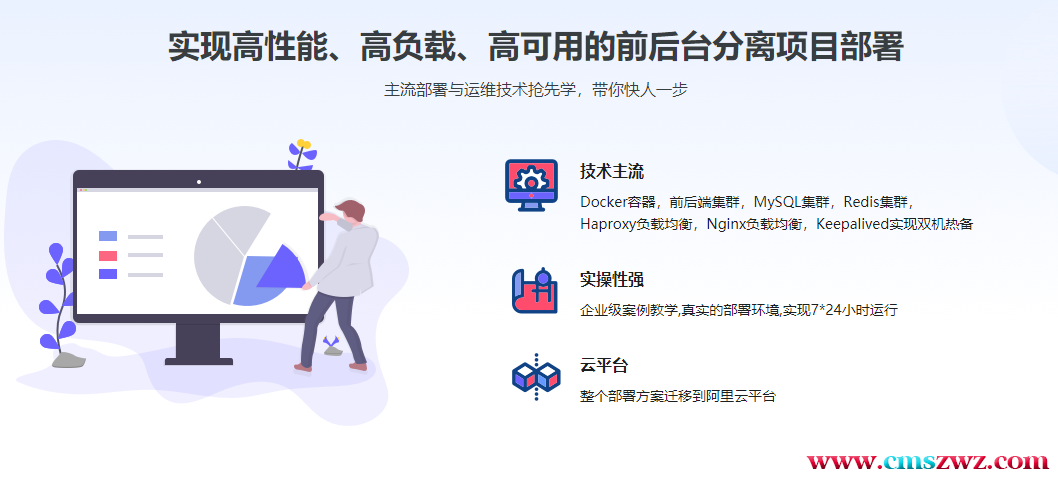 本课程把一个真实企业级前后端分离项目部署在Linux环境中,利用Docker虚拟机的容器技术,采用分布式集群部署,将项目转换成为高性能、高负载、高可用的部署方案。包括Docker集群、MySQL集群、Redis集群、负载均衡、双机热备等等。