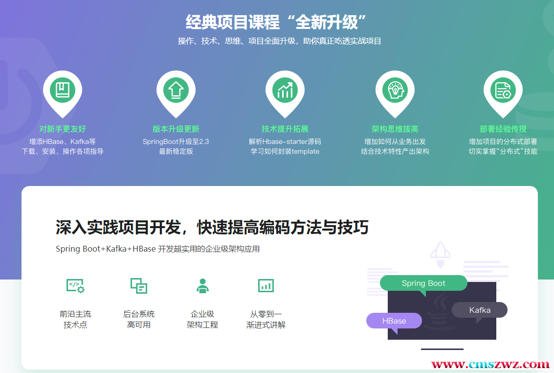 本课程详细解析Spring Boot、HBase、Kafka、MySQL等重要知识点,从零开始搭建一个企业级架构的通用卡包工程,并从产品设计的角度出发,提出可以对该工程做出优化和扩展的方向,课程讲解逻辑清晰,代码规范,快速提高项目实战能力。