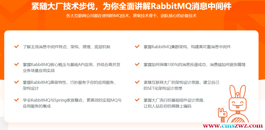 RabbitMQ非常适用于高并发环境。本课程将带你从核心概念到高级特性,再整合RabbitMQ&Spring家族,构建RabbitMQ集群架构,领略SET化架构衍化与设计,最后拓展基础组件封装思路,全面驾驭RabbitMQ。