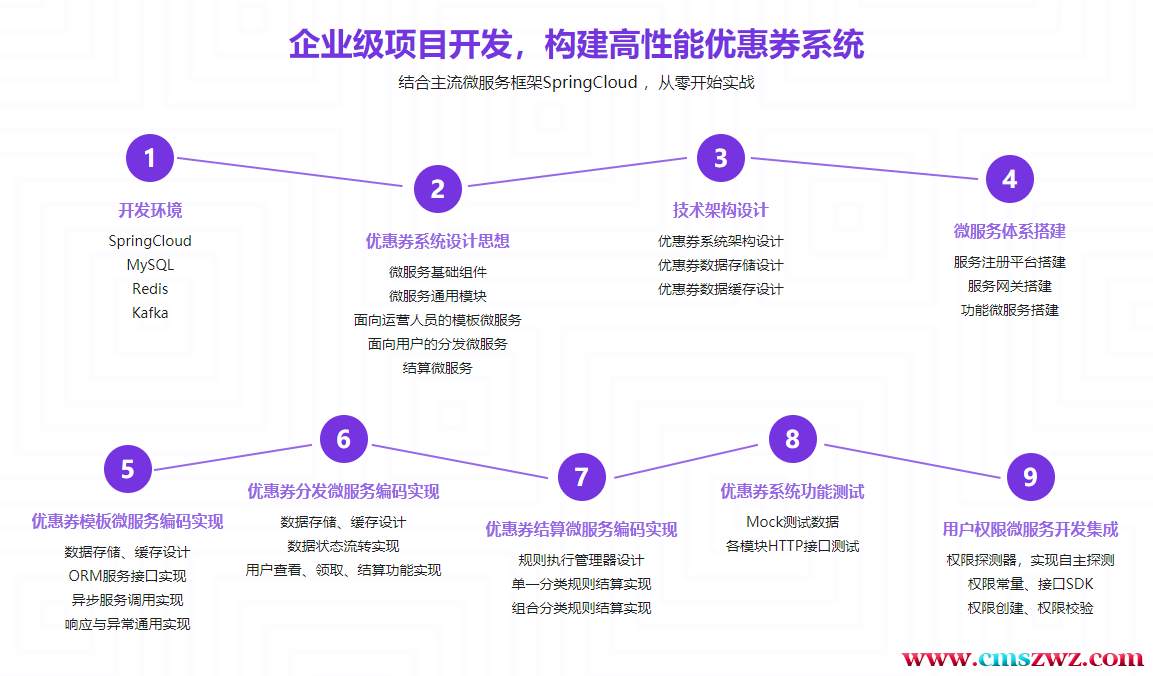 课程手把手带你实战搭建优惠券系统,基于主流的微服务开发框架SpringCloud,结合MySQL、Redis、Kafka,通过优惠劵模板、分发和结算三个微服务完成电商优惠券系统核心业务,是小伙伴们毕设、加薪、跳槽、转型的必备利器。