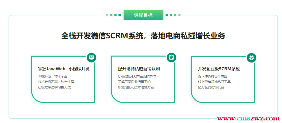 程序员想快速发展提升,除了编程技术精进,还有一大方向——深入业务,抓住好的赛道机会。当下各行业对于私域营销的迫切度与认可度居高不下,SCRM系统也受追捧。本课程带你自主开发一个打通个人微信、企业微信、公众号、小程序的SCRM系统,增强营销业务认知,提升商业场景技术落地实力。