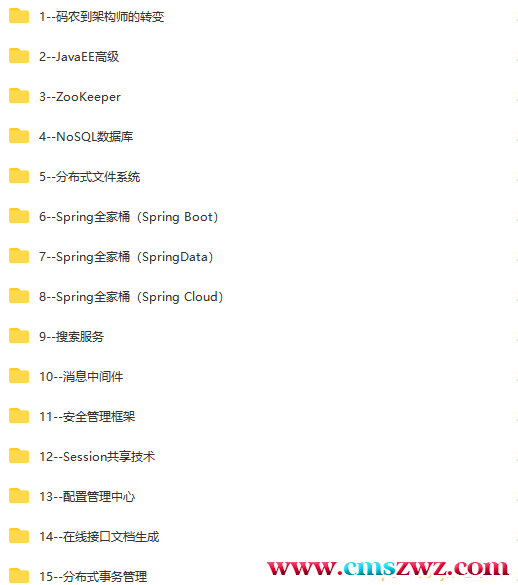 中涵盖redis,mongodb,dubbo,zookeeper,kafka 高并发、高可用、分布式、微服务技术。