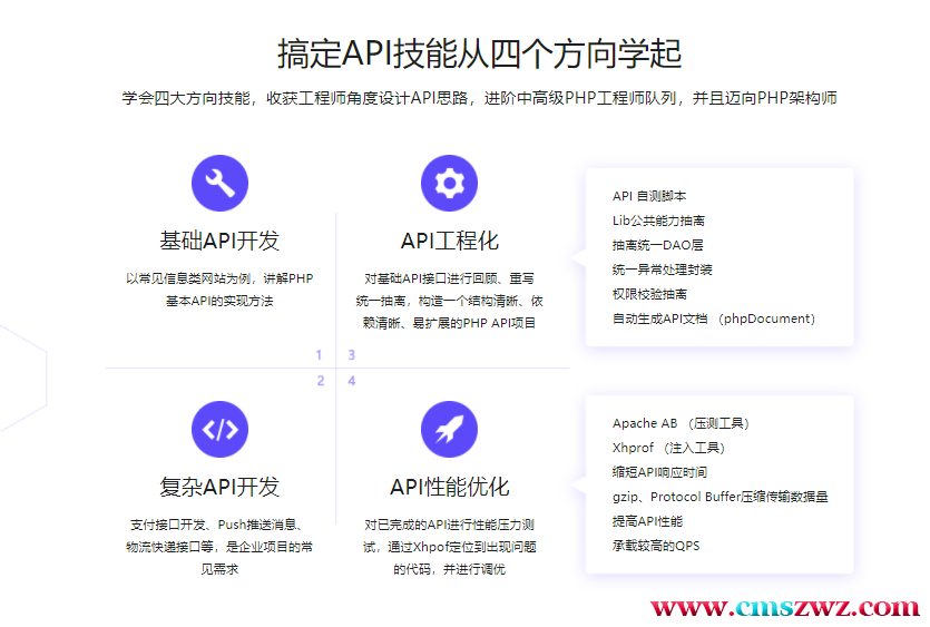 采用最适合做API层开发的Yaf框架、搭配PHP原生代码,实现互联网项目常见的API功能开发,从基础接口实现、进阶到基础接口工程化架构调整及性能优化,让你的开发更高效。