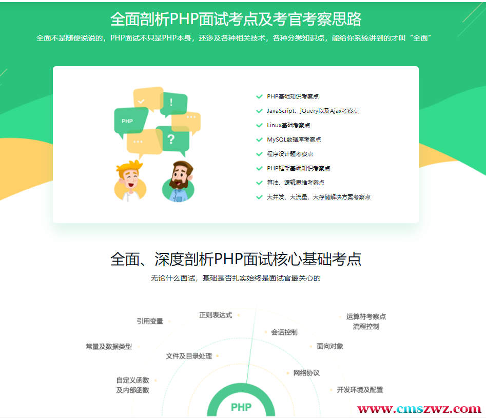 全面剖析PHP面试考点及考官考察思路,帮助准备参加面试的学员系统复习面试考点,总结面试重难点,理解解题技巧和方法,以不变应万变解决所有考点内容,面试时从容不迫。