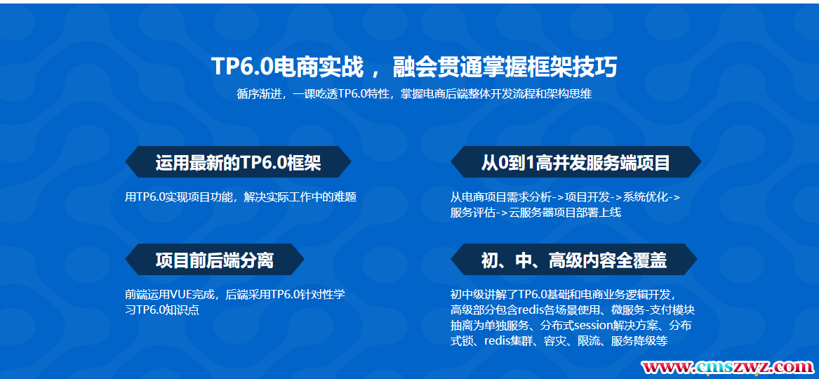 从基础到高并发到分布式讲解TP6.0,一战攻克电商开发初中高级技术点,学以致用