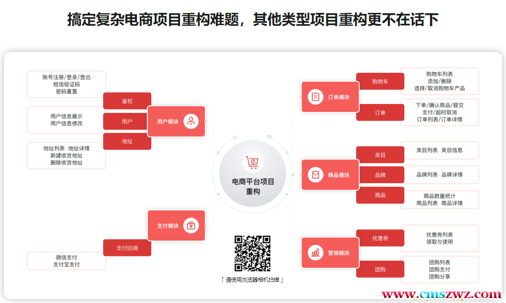 站式构建项目重构技术完整体系,强化你的职场核心竞争力!项目重构能力是所有开发者的核心竞争力。课程将通过Laravel技术+项目分析+业务模块拆解+重构技巧讲解+重构实战,带你重构一个企业级电商项目,最终帮你构建一套完整的重构技术体系,从此轻松解决项目重构问题。