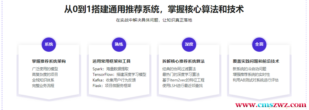推荐系统已经成为各大产品提升用户留存和业绩增长的利器,相关技术人才更是被各个公司竞相抢夺。课程基于项目实战,带你全面掌握推荐系统的架构、模型和技术,让你不仅可以胜任业务需求,更能拓展职业发展的空间,在白热化的竞争中脱颖而出!