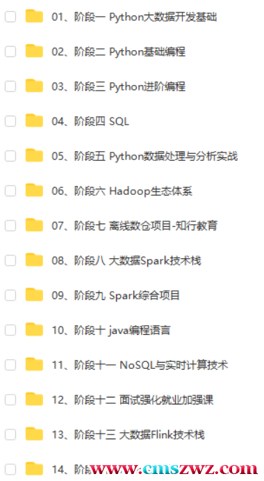 课程介绍:熟练使用DS、Oozie、AirFlow等任务调度工具,完成大数据任务调度熟悉Linux基本操作,完成分布式虚拟机搭建任务了解数据仓库开发从需求沟通、标签定义、编码开发、整个流程能够掌握Py