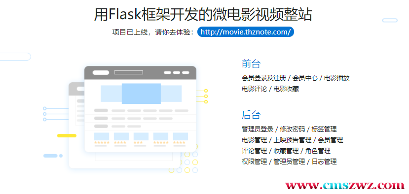 实现微电影网站前后台项目目录结构、使用flask blueprint蓝图模块构建目录合理优化项目结构、根据各模块业务需求使用flask sqlalchemy定义数据模型、模型生成数据表。