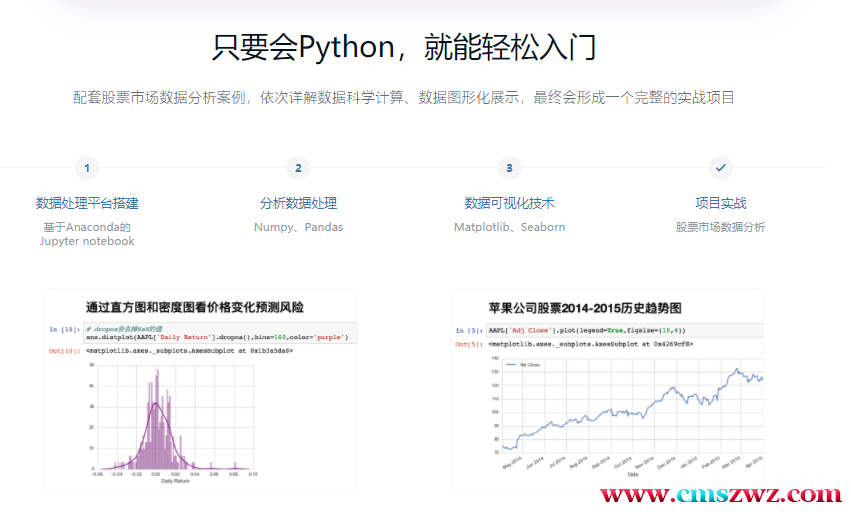 这是一个数据驱动的时代,本课程通过Numpy、Pandas进行数据科学计算,通过Seaborn、 Matplotlib进行数据图形化展示;从实战角度出发,让你在数据科学领域迈出重要的一步,开启Data Science职业之旅!