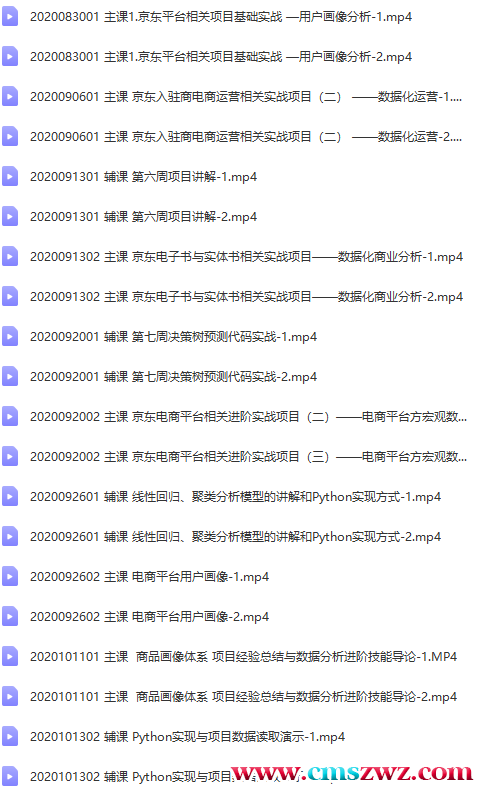 京东7七大项目实战。知识点: 用户购买预测、消费等于划分、商品画像体系、精准营销算法、产品定位分析、电商+AI、推荐算法。截图:
