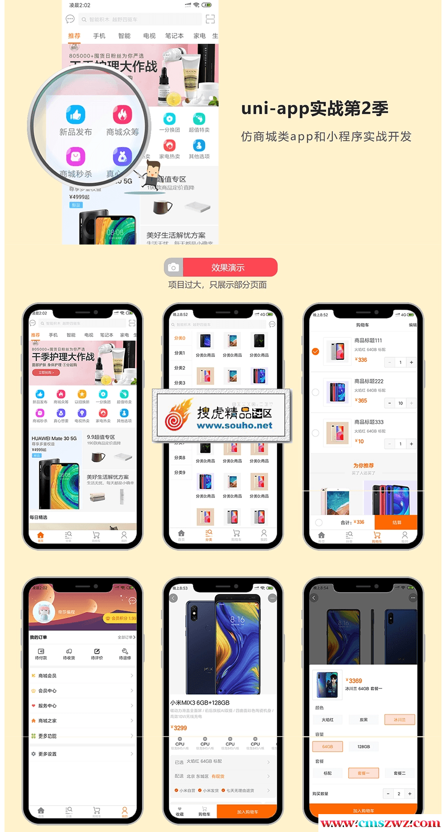 本季度为uni-app实战项目第2季度,将实战商城类app和小程序,其中会包括发布到Android,iOS、微信小程序,另外还会涉及Weex(nvue),Vuex模块化管理,商城支付模块等。