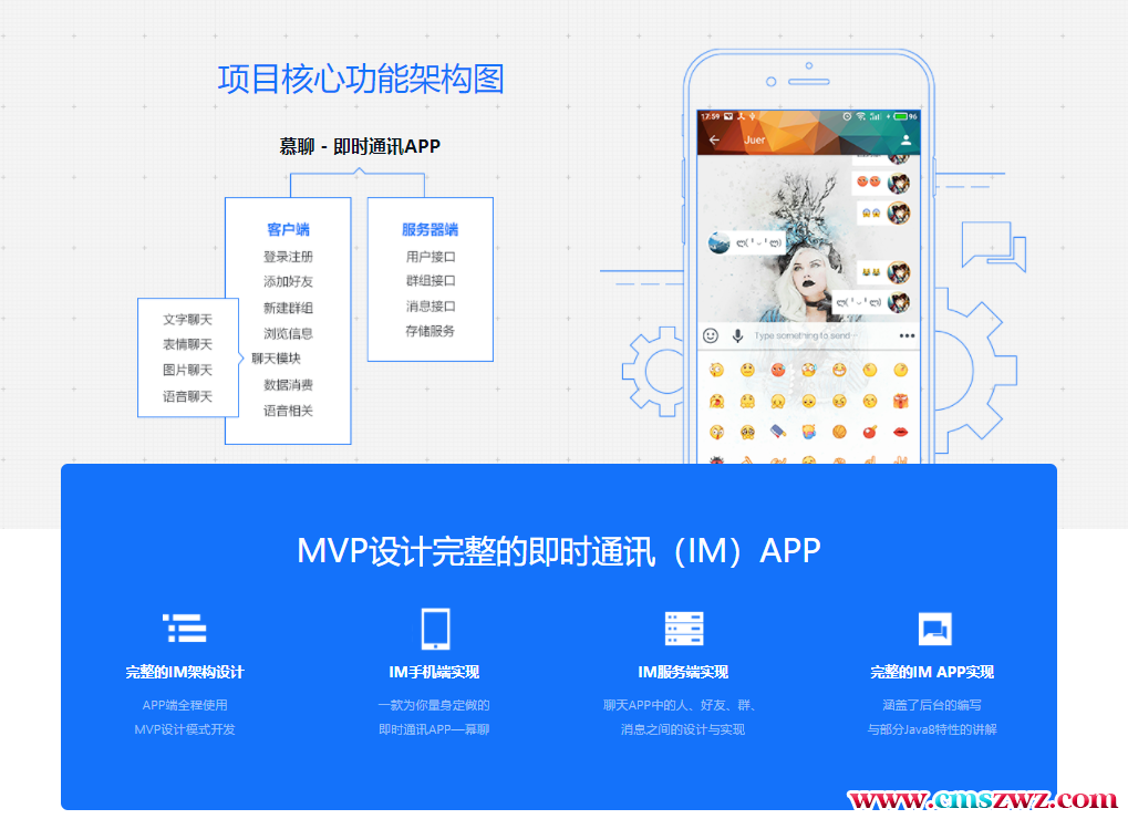 本课程将全程手把手,带你运用MVP架构,封装思想以及当下主流的技术框架开发一款功能全面的聊天APP(客户端+服务端),让你系统学习IM技术,并拥有一款高质量的APP,最终顺利的将IM技术落地,应用到实际项目中。