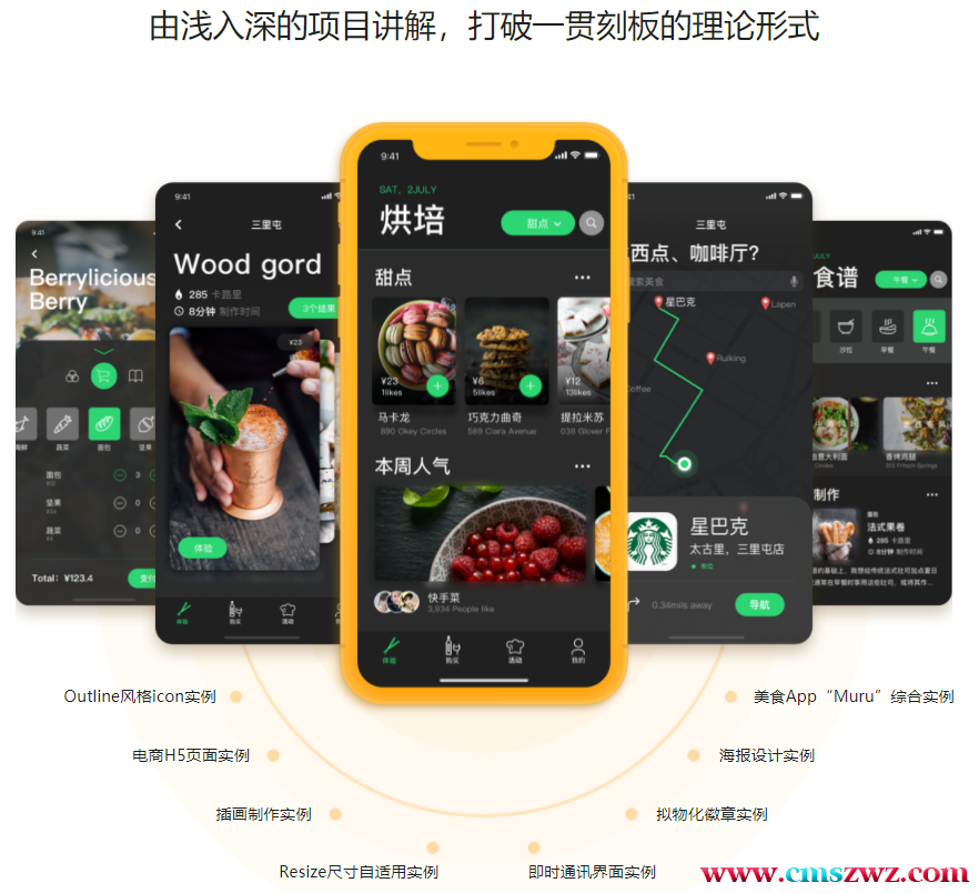 本节课你将学到钢笔工具的使用、渐变及填充、投影的使用,体会并观察实际中物品的光影与材质;模糊工具、栅格化工具、辅助线的应用,体会到界面排版及构图的重要及页面设计中存在的节奏感;剪切蒙版的使用和两种添加方式,体会到选图之于设计的重要性;切图工具使用技巧,体会团队配合中沟通的重要性;symbol模版工具的使用…