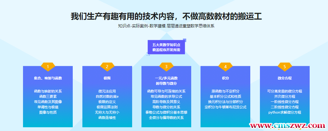 本章主要整体介绍课程,讲解高等数学与其他学科的结合应用,包含新兴理论算法及其前沿应用。另外,课程许多章节都有实战训练,会使用到python、SPSS或MATLAB等程序语言和应用软件。