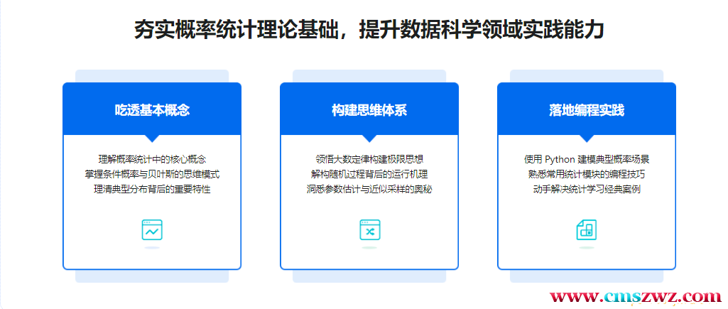 概率统计是机器学习,人工智能,计算机科学的基石,算法工程师不懂概率统计很难深入应用,本课程专门针对机器学习中的概率统计知识与难题,从数学理论、经典案例到 Python 对概率统计核心功能的实战,带你快速打造算法领域的基础核心能力,打开更广阔的进阶空间。截图: