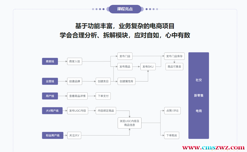 针对电商核心的商品与门店的应用场景,支持事务ACID特性的Mysql数据库是最合适的解决方案,本章中,将会深度讲解Mysql选型的优劣势、事务实现原理、读写能力提升秘诀,并引入领域驱动建模的设计方式,完成商家,门店,商品,sku的底层数据模型构建,并能同步支持导购中搜索与商品详情的业务场景。…