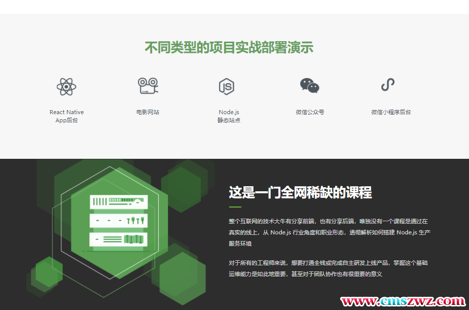 分别介绍五个技术架构和产品形态的项目背景,一个 Nodejs 静态网站,普通的带数据库电影网站,手机 App 场景下的后端项目如何通过服务器跟应用进行数据通信交互的场景,小程序的运行平台,基于此平台下需要提供的 API 服务如何部署,公众号的前端后端及消息机制下搭建的功能形态,部署需要注意的事项,以及一个生动有…