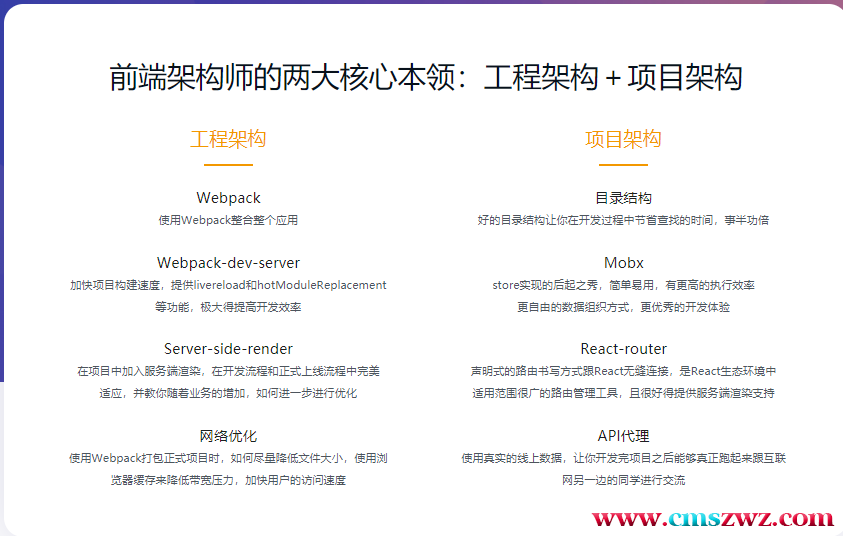 市面上讲框架使用的课很多,但鲜有讲如何搭建工程让项目运作起来的课程,本课程将从架构高度,讲解一个高级前端的工作流,在实战中,教你在面对一个项目时,如何进行技术选型,如何根据选择的技术搭建工程,以及如何进行优化,让团队协作更完美,并很好得控制代码质量,让你向前端架构师迈进!