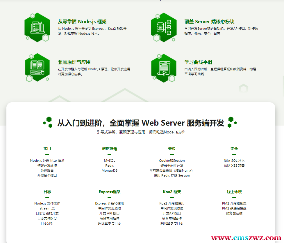 前端开发人员必备技能Node.js提升课程。本课程以博客项目为主线,由浅入深讲解 Node.js 基础知识、框架和插件原理、web Server 的特点与必备模块,在项目开发过程中全面掌握Node.js。掌握全栈工程师必备技能!