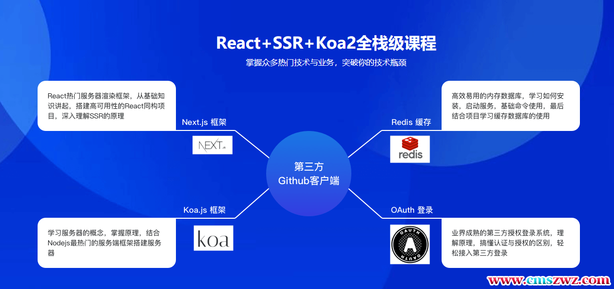 本课程使用Next.js、Koa、Github API等搭建了一个全栈项目——第三方Github客户端。通过课程学习让同学们理解Next.js搭建全栈同构项目的过程以及其SSR原理,深度理解业界广泛使用的OAuth登录体系,提升竞争力。