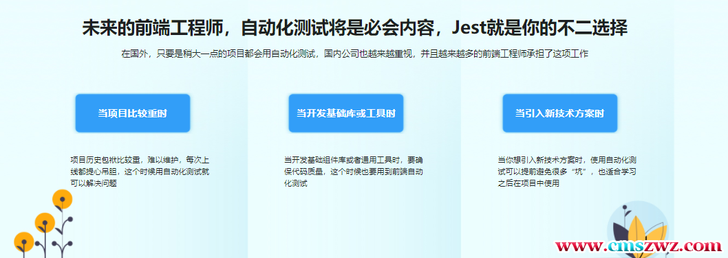本章讲解前端自动化测试框架的产生背景,原理以及目前最为流行的前端自动化测试框架 Jest 的使用方式,帮助大家入门前端自动化测试基础知识。