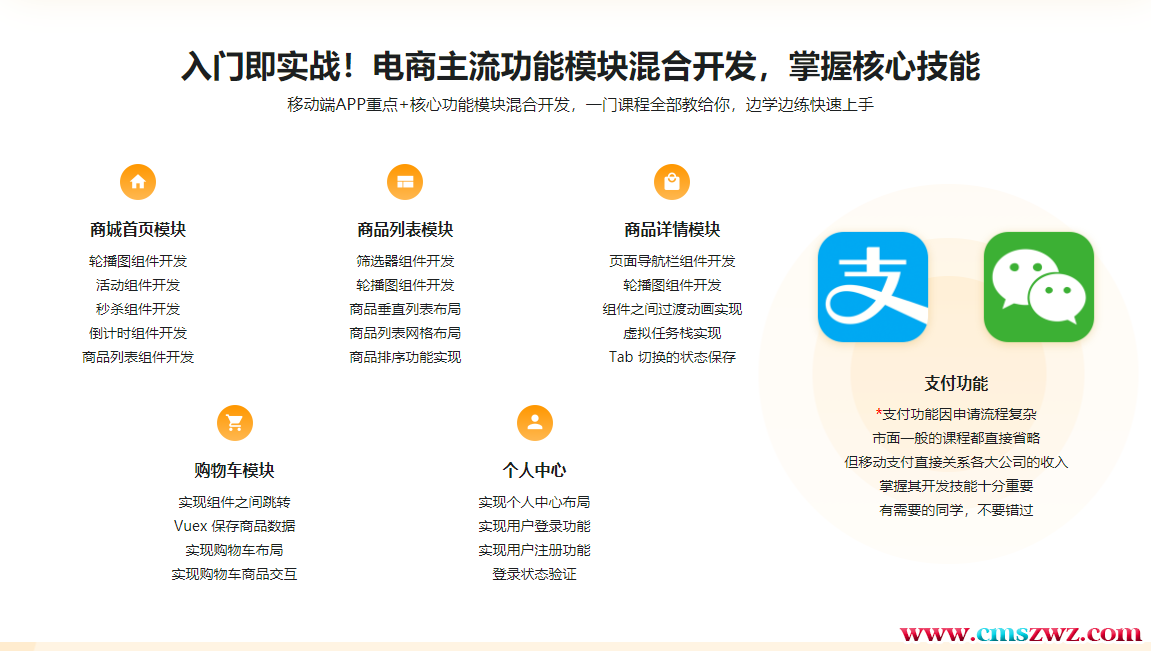 本章主要使用 vue 开发商城首页,包括组件化思想、动态组件和异步组件的应用、axios的使用、swiper 的使用、瀑布流、ToolBar、NavBar组件的创建等等核心内容。
