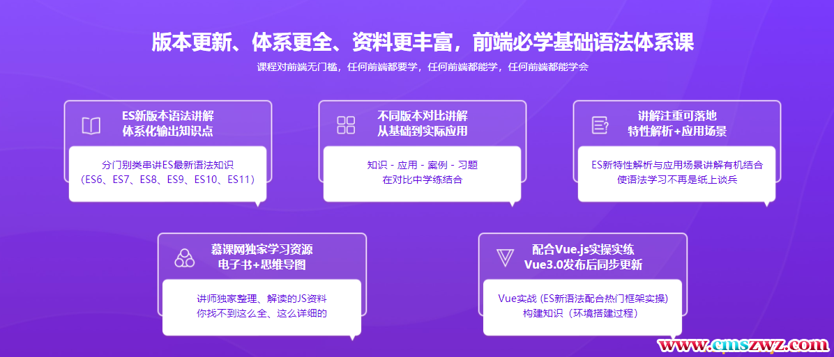 JS是前端立身之本,不管框架多花哨,不会JS也是白扯。这门课可以帮助你夯实前端基础,掌握最新的ES6到11语法,稳步提升编程能力。课程带你熟练掌握语法,很多依赖第三方库才能做到的事用原生JS寥寥几行代码就可迎刃而解。