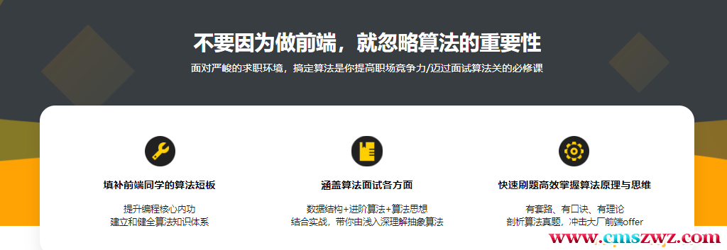 从求职角度,在面试前建立自己的算法技术体系。本课程带你用JS语言解决LeetCode上的经典算法题,对每一道题都进行线上测试,每题都有时间/空间复杂度分析。结合前端实际开发情景,带你掌握数据结构与算法。