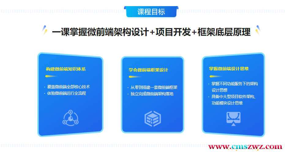 为什么要学微前端架构?当你的项目越来越复杂,工程越来越大,代码冲突越来越频繁,打包越来越慢的时候,就该好好学习下微前端架构了。本课程将带你从零打造一个微前端框架,并实战一个汽车资讯平台,让你系统掌握微前端架构设计与落地能力,轻松解构巨型应用。