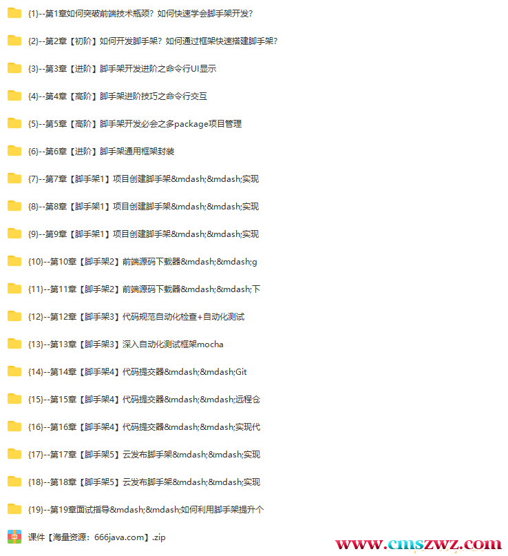 课程简介:当下的前端开发,离不开脚手架。初级前端需会用脚手架,中高级前端应能够开发脚手架——掌握脚手架,就是贯穿初中高级前端生涯的核心竞争力之一。本课程集中讲解脚手架的设计思路和开发实践,并带你实现5个不同的脚手架项目,助力前端全流程提效,塑造个人竞争优势。