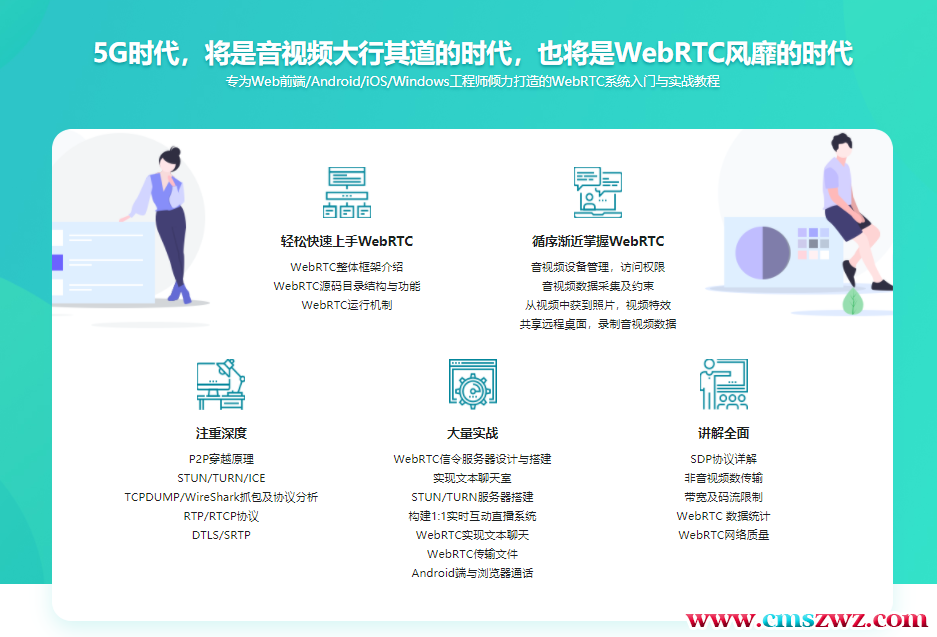 5G时代下,音视频行业将会得到前所未有的蓬勃发展,音视频人才将成为新的宠儿。本课程将从入门到实战,系统讲解WebRTC实时互动直播技术【音视频领域核心技术】,让你低门槛进入音视频行业,快速成为企业急需的音视频工程师。让你对整个 WebRTC技术的使用有非常深入的掌握,并有能力实现一套1对1音视频实时互动直播系统,并可以与其它终端进行互联。而这些能力正是当下企业急需的能力。还在等什么,赶快学起来!