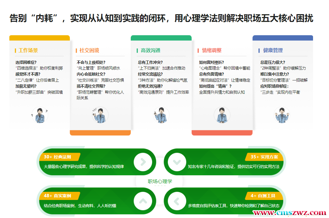 在我们职业生涯发展过程中,总会面临各种各样的困惑而无所适从,身心疲惫不堪,不利于自身职场发展。本课程我们将从心理学角度,从职业选择和升迁、健康管理、情绪管理、职场沟通、社交关系等五大方面深度解读职场常见问题,刷新你的认知,并提供科学有效、实操性强的解决方案,走出心理误区,轻松处理职场关系,开启你的职场开挂人生!