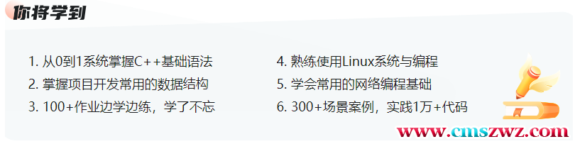 C++工程师高薪稳定,一将难求,但体系庞杂,学习路线陡峭。鉴于此老师萃取20多年实战干货,精心设计更利于初学者学习和应用并重的课程体系,带你从0到1系统掌握C++必备项目实战综合知识,只学工作中用得着的干货,让你学习更顺畅,更高效,大大节省你入门到入行/转行的宝贵时间和精力。