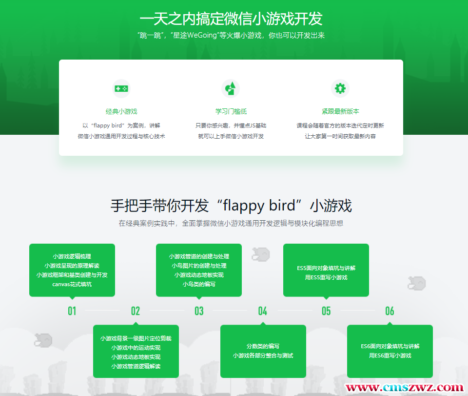 微信小游戏以自己的独特的方式切分了手机游戏市场这块大蛋糕。本课程从0开始,讲述微信小程序的整个开发过程,所讲解内容包含小程序核心API、工具链等小游戏开发核心技术。掌握小游戏开发,展示你的创意,与10亿微信用户分享快乐。