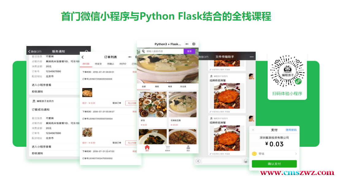 本课程是python flask+微信小程序的完美结合,从项目搭建到腾讯云部署上线,带你打造一个全栈订餐系统。从基础语法入手,构建MVC架构,增进对小程序和后端API的理解认识。帮助你快速提升项目经验,提高项目中解决问题的能力。