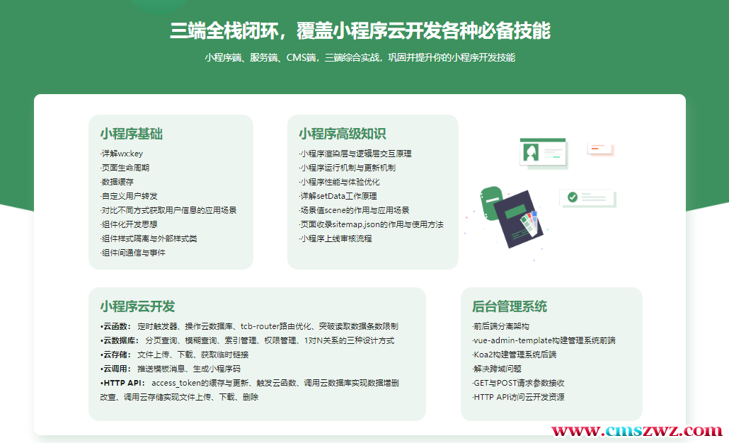本章使用vue+koa2完成前后端分离架构的后台管理系统,详细讲解通过HTTP API访问云资源实现对云函数、云数据库、云存储的调用,实现对项目中数据与文件资源的管理。并讲解前后端分离架构如何处理跨域问题以及如何接收get/post请求的参数。…