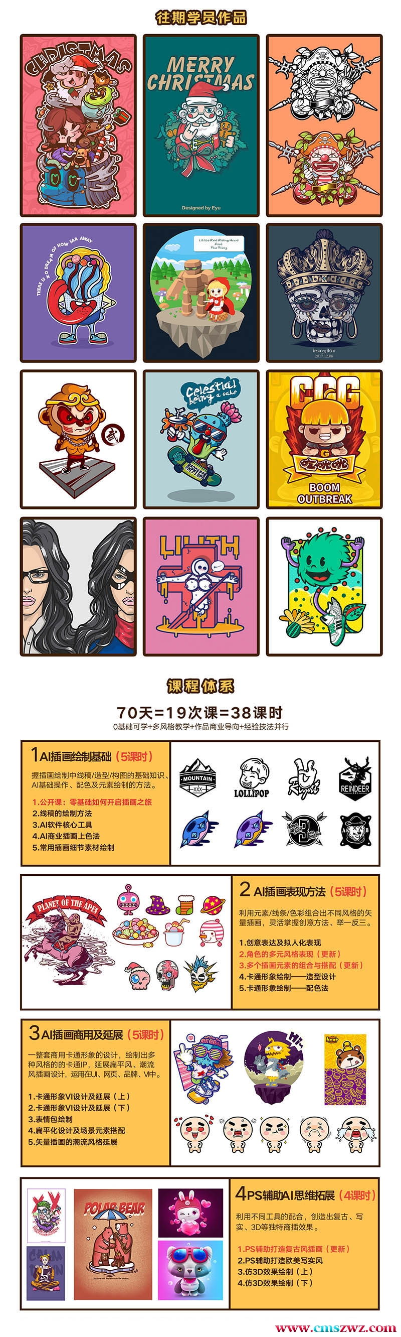 课程目录第01章·AI插画绘制基础 90:00第1节 · 零基础如何开启插画之旅 90:00第2节 · 线稿的绘制方法 90:00第3节 · AI软件核心工具 90:00第4节 · AI商业插画上色法 90:00第5节 · 常用插画细节素材绘制 90:00第02章·AI插画表现方法第6节 · 创意表达及拟人化表现 90:00第7节 · 角色的多元风格表现 90: