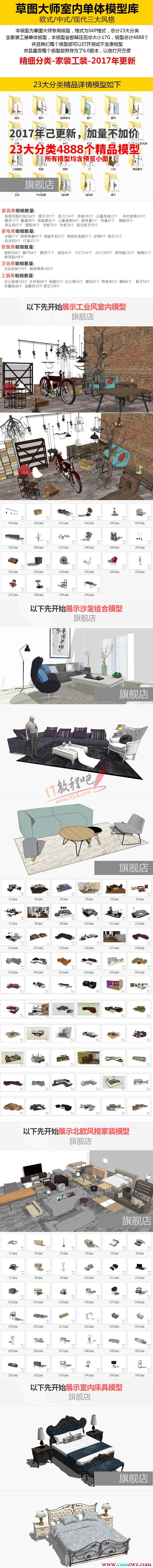 2017 天猫sketchup草图大师视频教程+中式家具建模素材