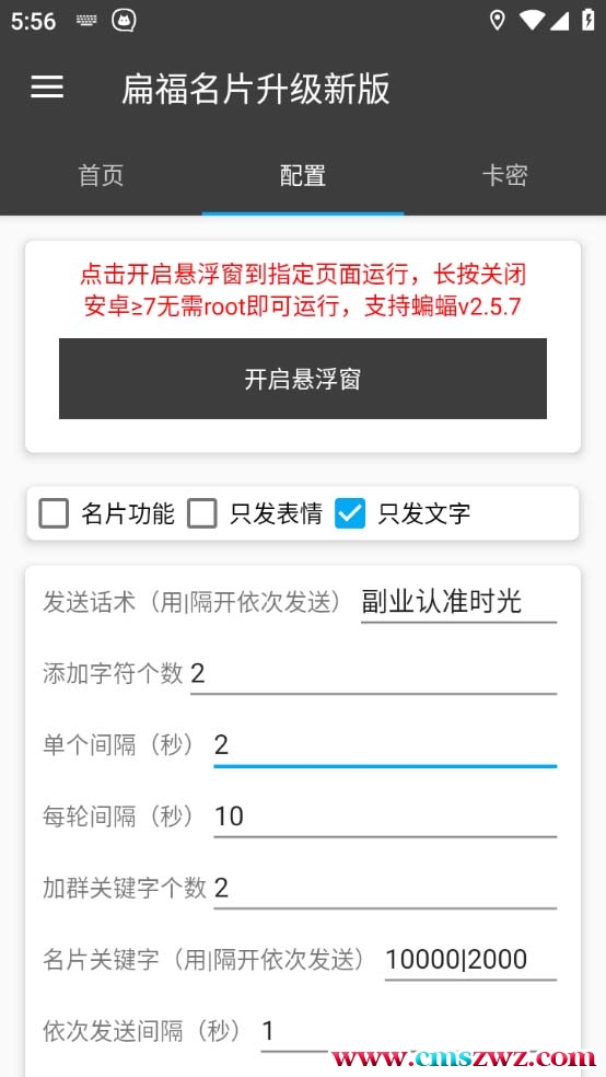 平台:蝙蝠APP(可以去安卓手机的应用商店或腾讯-应用宝内搜索下载),玩过蝙蝠的,懂的都懂,也是一个引流神器脚本功能:支持自动群发文字广告消息,全自动群发设备需求:电脑模拟器或者安卓手机(安卓7.1以上版本,不支持鸿蒙系统)本脚本卡密需要另外购买,几块钱一个,介意请移步到不需要卡密的项目