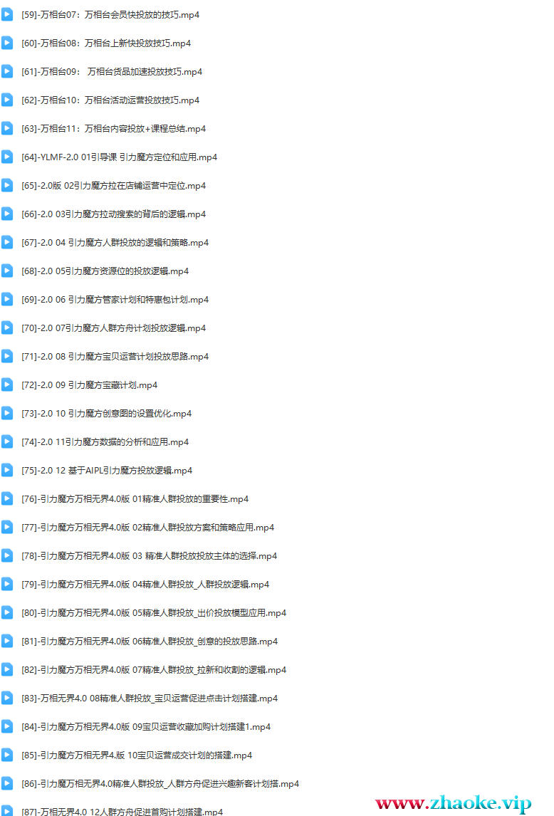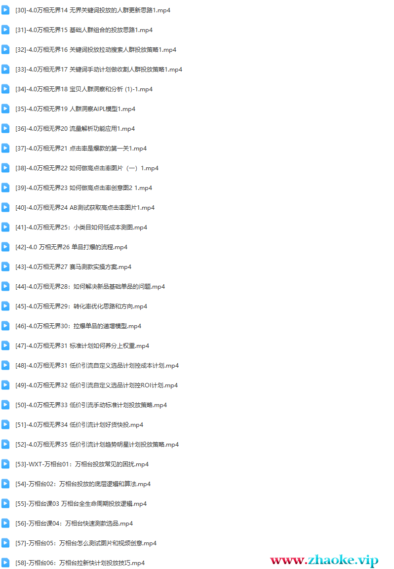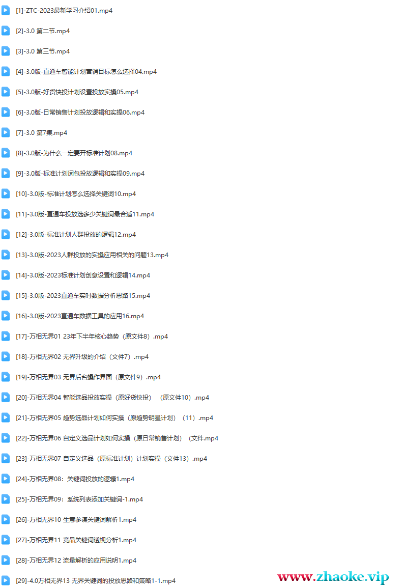 └──[9]-3.0版-标准计划词包投放逻辑和实操09.mp4 63.73M├──[10]-3.0版-标准计划怎么选择关键词10.mp4 79.38M