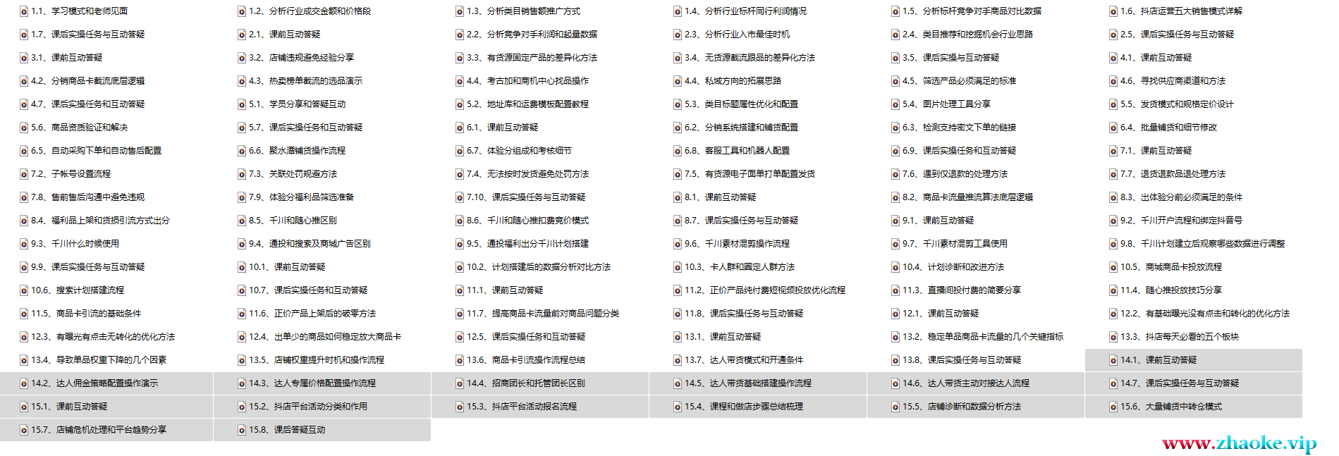 ├──13.8、课后实操任务与互动答疑.mp4 7.77M├──14.1、课前互动答疑.mp4 116.96M